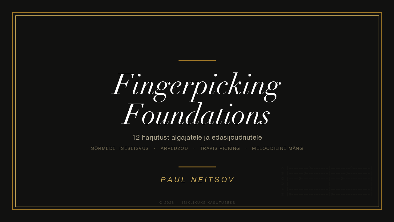 Fingerpicking Foundations on praktiline algtaseme ja varasema kesktaseme kursus neile, kes tahavad saada parema käe töö kindlamaks, õppida mustreid ja liikuda samm-sammult puhtama mänguni.